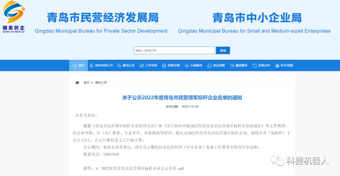 近日,青島市民營經(jīng)濟發(fā)展局公示了2022年度青島市民營領軍標桿企業(yè)名單,青島科捷機器人有限公司成功入選。這是青島首次評選民營領軍標桿企業(yè)。 2022年青島市政府工作報告明確提出,“實施民營經(jīng)濟壯大計劃,培育民營領軍標桿企業(yè)100家以上,建設全國民營經(jīng)濟示范城市”。
