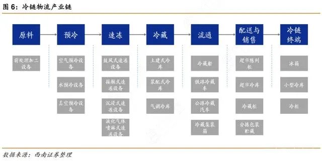 冷鏈物流指產(chǎn)品在生產(chǎn)、貯藏運(yùn)輸、銷售,到消費(fèi)前各個環(huán)節(jié)始終處于規(guī)定的溫度區(qū)間,以保證產(chǎn)品質(zhì)量、減少過程損耗的一項(xiàng)系統(tǒng)性工程。冷鏈物流是以冷凍工藝學(xué)為基礎(chǔ)、以制冷技術(shù)為手段的低溫物流過程,廣泛應(yīng)用于初級農(nóng)產(chǎn)品(蔬菜、水果等)、加工食品(肉、水產(chǎn)等包裝熟食,冰淇淋,快餐原料等)和特殊商品(化工產(chǎn)品、醫(yī)藥、生物制品等)。